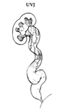 A megaureter means “big ureter” and is a descriptive term, not a diagnosis. The two important questions about megaureter are whether there is reflux (backwash) of urine causing the megaureter or whether there is blockage at the ureterovesical junction causing megaureter. If there is reflux, the diagnosis is “refluxing megaureter” or “megaureter from reflux”. If there is obstruction, the diagnosis is “obstructed megaureter” or “primary obstructed megaureter”. If there is neither reflux or obstruction, then the diagnosis is “primary non-obstructed megaureter”. In very rare circumstances, there can be reflux and obstruction and the diagnosis is “refluxing obstructed megaureter”. The two most common types of megaureter by far are the “primary non-obstructed megaureter” and the “refluxing megaureter”.